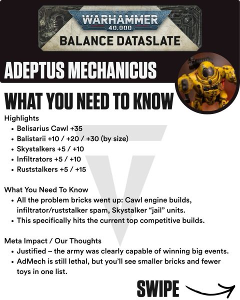 El adeptus Mechanicus también recibe importantes cambios a peor con subida de costes muy importantes: