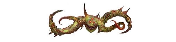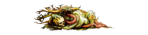 Con los dedos ulcerados flexionándose alrededor de la empuñadura de roble férreo podrida de su arma, Rangletch suspiró. Sacudió lo que quedaba de los cadáveres de los grots de las puntas de su tridente y lo pisoteó hasta convertirlo en escombros. La matanza no cesó solo porque él lo hiciera. El zumbido incesante y el silbido de las extremidades delanteras afiladas confirmaron la presencia de su montura Mosca Podrida aún cerca, corriendo de un lado a otro, desahogando su pueril rencor sobre los grots de madera con el poco regocijo que aún podía reunir. Pero Rangletch se quedó de pie, y Rangletch pensó.