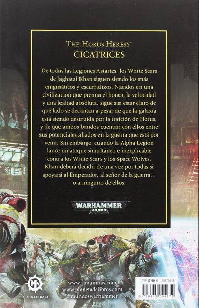 De todas las Legiones Astartes, los Cicatrices Blancas de Jaghatai Khan siguen siendo los más enigmáticos y escurridizos. Nacidos en una civilización que premia el honor, la velocidad y una lealtad absoluta, sigue sin estar claro de qué lado se decantan a pesar de que la galaxia está siendo destruida por la traición de Horus y de que ambos bandos cuentan con ellos entre sus potenciales aliados en la guerra que está por venir. Sin embargo, cuando la Legión Alfa lance un ataque simultáneo e inexplicable contra los cicatrices blancas y los Lobos Espaciales, Khan deberá decidir de una vez por todas si apoyará al emperador, al señor de la guerra… o a ninguno de ellos.