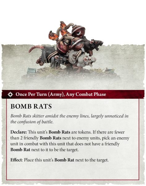 Las ratas bomba son una excelente manera de rematar una unidad ya debilitada o de infligir daño a un objetivo particularmente resistente. Es un plan tan astuto que resulta ideal para los Skaven.
