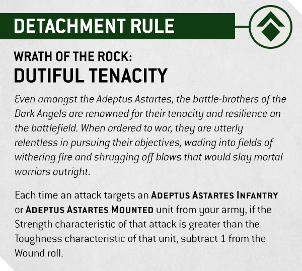 Esto se inspiró en ediciones anteriores de los juegos, donde la infantería de una fuerza de los Ángeles Oscuros era más difícil de herir que otros Marines Espaciales. También queríamos extender esto a la parte montada del ejército, buscando crear un Destacamento de los Ángeles Oscuros que impactara en el núcleo del ejército junto con Ala de Cuervo y Ala de Muerte.