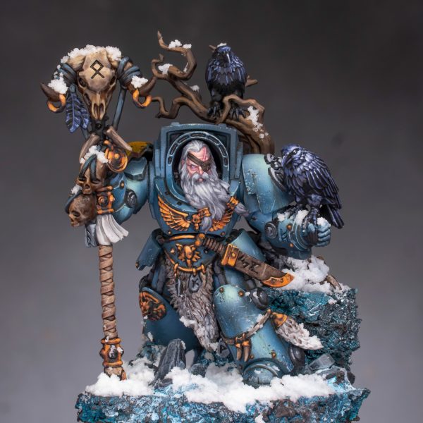 Este personaje Lobo Espacial es increíble y esta muy bien conseguido en personalidad y originalidad. Un sacerdote rúnico que sin duda con el toque nieve y esos amigos voladores lo hacen único.