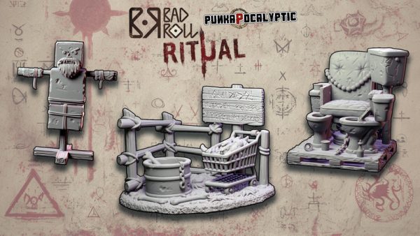 Además de las seis miniaturas con la opción tenéis tres elementos pequeños de escenografría, un tapetey un PDF con las reglas para jugarlas en Punka.
