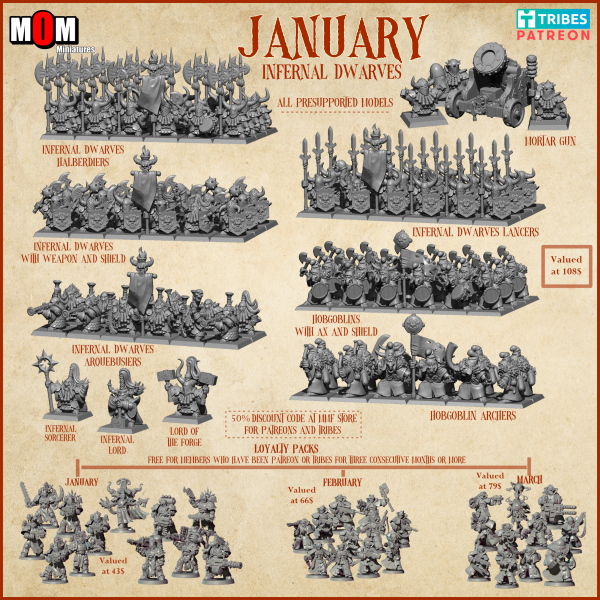 Porque en su PATREON tienen un pack de fidelidad si llevais tres meses unidos, tenéis unos geniales extra además de las miniaturas de cada mes en forma de Marines del Caos.