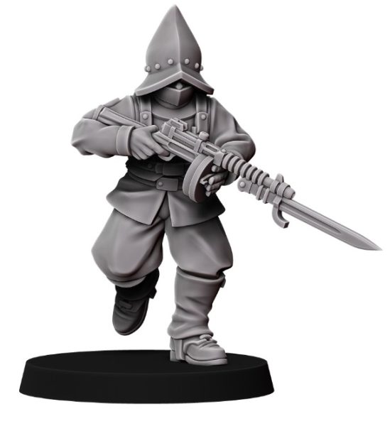 Porque tiene una nueva línea de miniaturas ambientas en un mundo futurista (estilo Warhammer 40000 o Herejía de Horus) a la que han llamado Trench Heresy y esta es su primera unidad disponible.