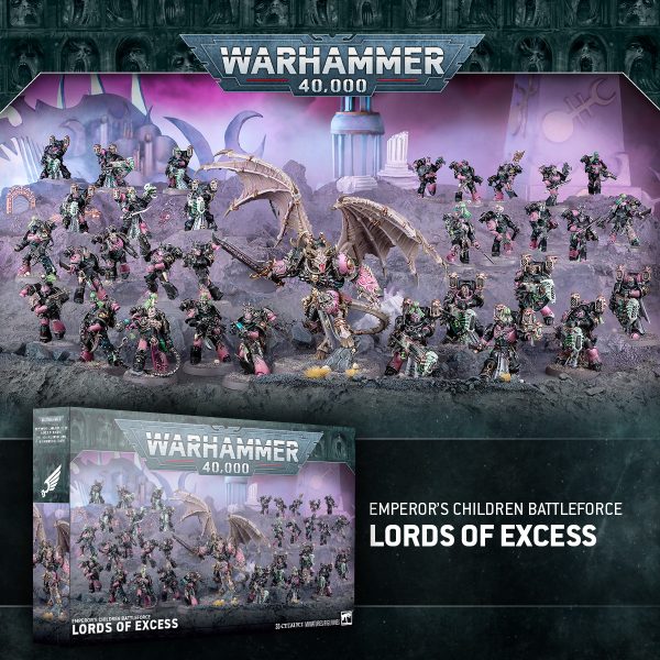 Los Hijos del Emperador dan el pistoletazo de salida con los Señores del Exceso, un conjunto de tropas veloz y letal que ejemplifica el enfoque de armas combinadas de la Legión.
