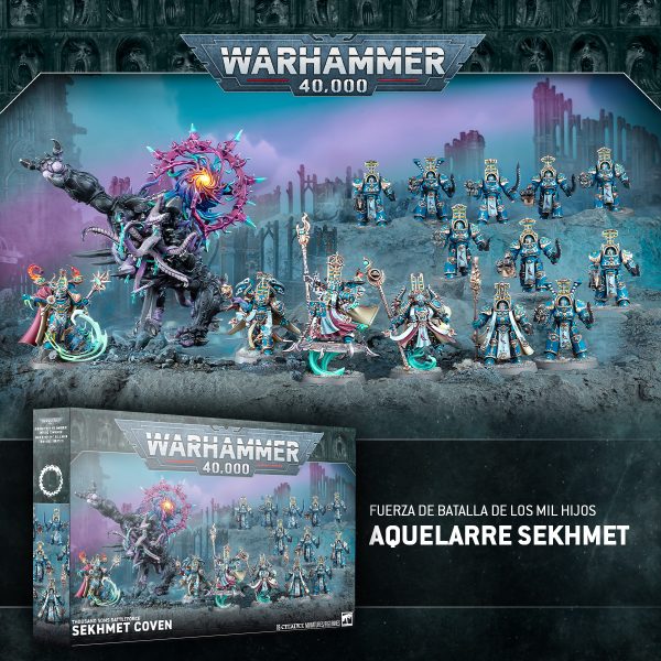 Los Mil Hijos son más conocidos por su hechicería que por su fuerza bruta, pero si quieren ganar una batalla contra los otros tres Dioses, deben darlo todo. La fuerza de batalla del Aquelarre Sekhmet es precisamente un despliegue de este tipo, dejando atrás a sus típicas cohortes de Marines de la Rúbrica para centrarse por completo en las unidades más grandes y resistentes disponibles.