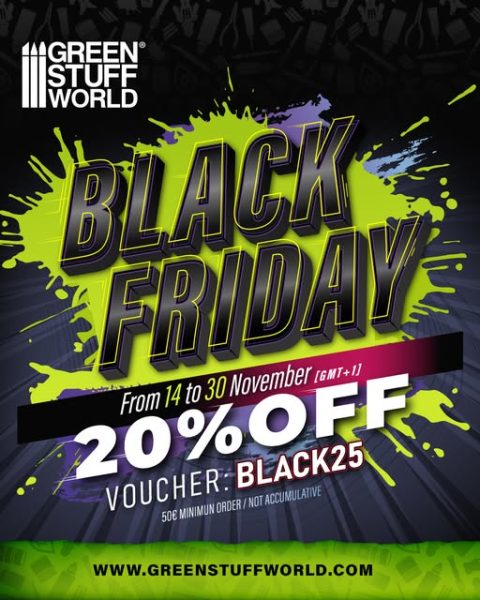 Y sin duda esta oferta hay que aprovecharla porque Green Stuff World tiene geniales productos del hobbie y por compras superiores a 50 euros llevarse un 20% de descuento con este código es una buena formula de conseguir ahora esos productos que siempre hemos querido para nuestro modelismo.