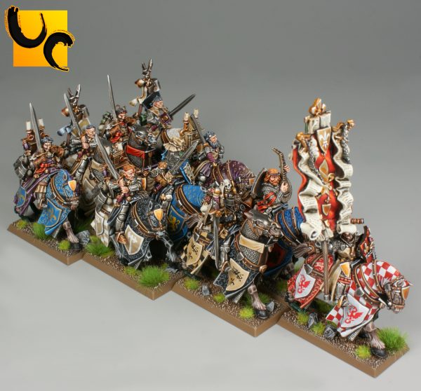 Se trata de una clásica cuña de caballería en formación a la carga y cada uno de los caballeros es una preciosa miniatura individual.