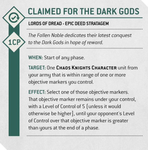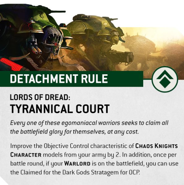 Ambos son ideales para desplegar una fuerza mixta de Caballeros y Perros de Guerra grandes, pero si prefieres inclinarte por uno u otro lado, los otros dos Destacamentos ofrecen opciones muy atractivas.
