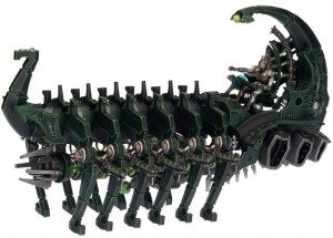 Estrategia: Única arma de gran distancia del ejercito necron. Se trata de un Leman Russ o un Vindicator al estilo necron. Un gran cañón que hará mucha pupa donde caiga. Perfecta para destrozar vehículos enemigos y unidades poderosas que estén un poco apiñadas. Además tiene la ventaja de poder mover 15 cm. y disparar el arma pesada y los rifles gauss a otros objetivos. Buen blindaje como todos los vehículos necrones, metal viviente que nos asegura poder disparar más y si nos movemos 30 cm. aun podremos disparar un arma de fuerza 7 y plantilla. Como veis, todo son ventajas.