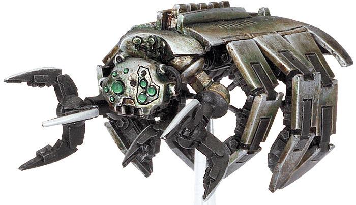 Estrategia: Debemos usar estas arañas primero para crear una peana por turno antes de que nuestro enemigo se acerque. Depende de las circunstancias, quizás sea interesante añadir más peanas a una unidad ya existente de escarabajos y en algunos momentos lo que más nos convenga sea crear una nueva unidad. Eso te lo dirá la partida. Y luego serán las unidades que frenen a las unidades que más se acerquen a tus unidades de disparo, acompañándolas si puedes de otras unidades de asalto necronas. Las opciones para las arañas son interesantes y según tu lista te interesara añadir unas u otras. Si llevas muchos vehículos, las garras de reparación deben ser obligatorias. Algún cañón de partículas tampoco te vendrá nada mal, con fuerza 6 y arma de plantilla.
