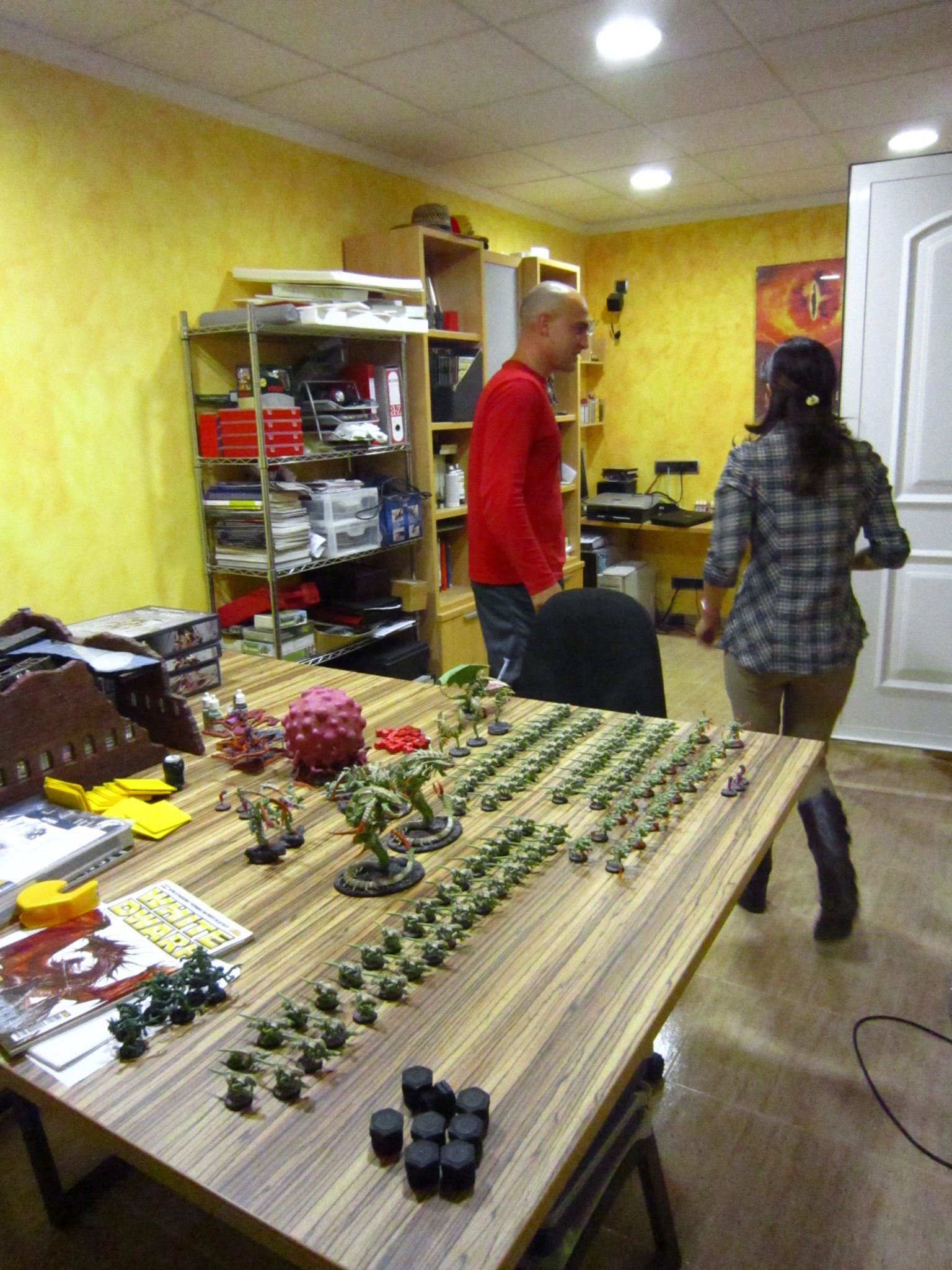 Amanece que no es poco y tras desayunar y casi mojar los ojillos en café pues dormimos dos horas, partimos al torneo hoy de warhammer fantasy. Husaí es el jugador hoy y tras los saludos iniciales a mucha gente que estuvo el día anterior allí, comienzan las batallas. Al contrario que en el torneo del día anterior las misiones condicionaron las victorias y derrotas de comandantes experimentados que no estaban acostumbrados a misiones tan especiales como estas. Curioso y a la vez difícil bajo mi punto de vista pasaron las partidas. El ejercito de Husaí fue este día también nominado uno de los diez mejores pintados del torneo, tenéis que verlo en serio un ejercito del caos increíble con un arriesgado combo de colores que sorprende al más experimentado, y si no que se lo pregunten a uno de los organizadores del torneo que le sacó fotos a todas horas y desde todos los ángulos posibles ahí John picaruelo sabes poco tú.