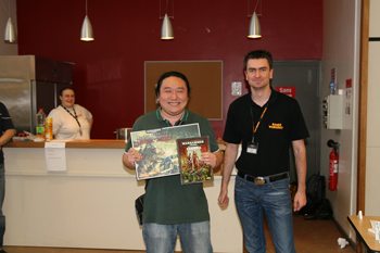 Tambien aqui hacen clasificiación por grupos o asociaciones y debo decir que en Fantasia una asociación llamada MAD tenia 5 de las 6 primeras posiciones del torneo (parece un buen lugar para jugar al fantasia verdad). Y otra cosa curiosa y diria que preocupante para GW. Los tres ultimos de Warhammer 4000o en la clasificación son chicos de rojo de GW de la tienda de Lyon y el ultimo en Warhammer Fantasia tambien. Si ese es el nivel que tienen los que deben aconsejarnos a jugar….. Yo prefiero aprender con otros…..