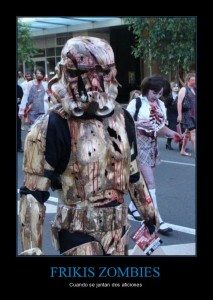 Que pasaria si unes dos pasiones tan dispares como la Guerra de las Galaxias y las peliculas de Zombis. Seria, suponemos, algo asi:
