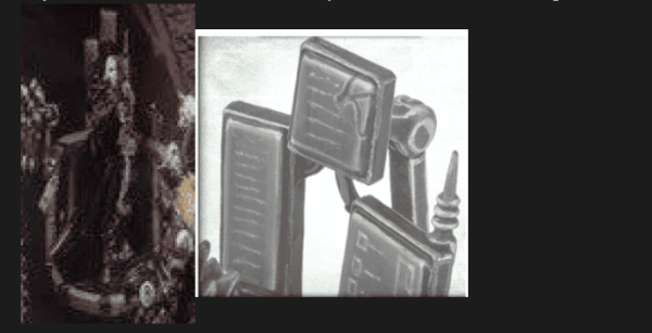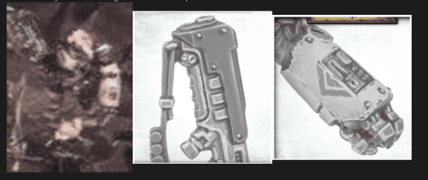 Las conjeturas van desde un mercenario estilo Kroot hasta un mercenario Soldado Perro Tarelliano. Eso entra muy bien en el trasfondo de los Corsarios Rojos y podría abriros geniales ideas para crear unidades Xenos del Caos para vuestra fuerza de este ejército.