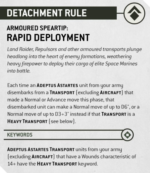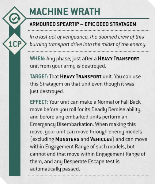 Las seis Estratagemas incluidas en este Destacamento se centran principalmente en el rol de transporte.