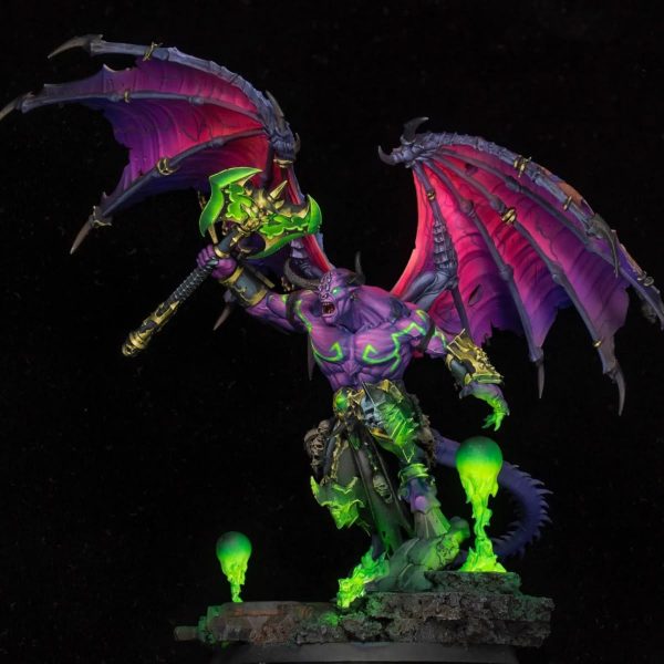 Este demonio esta totalmente transformado y vemos esos clásicos colores y esquema de color habitual de Slaanesh. Muy llamativa a la vista.