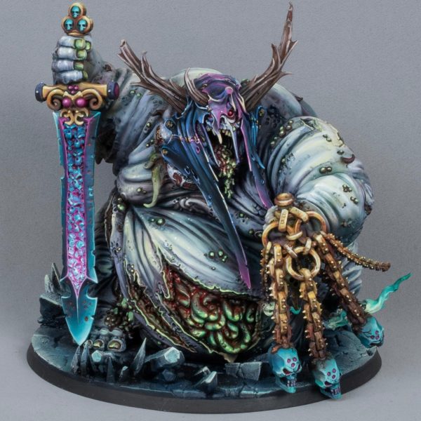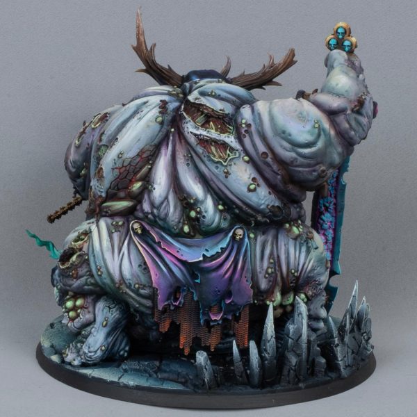 El papi Nurgle no siempre tiene que ir en sus tonos verdes putrefacción y aquí hay un buen ejemplo de un pintado y tono diferente. Me gusta mucho la idea y sin duda a probar otras colores o tonos de pobredumbre.