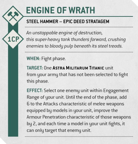 Luego, una vez que tu tanque haya cargado contra su presa, usa la estratagema Motor de la Ira para convertir en papilla unidades enteras de almas desafortunadas.