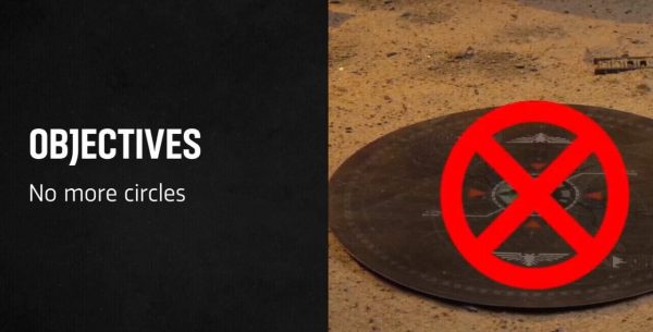 En cambio, se espera que los objetivos se conviertan en huellas físicas del terreno, como búnkeres, yacimientos arqueológicos, ruinas o elementos del campo de batalla con los que las unidades interactúan directamente. En lugar de controlar un círculo flotante, las miniaturas puntuarían al tocar el borde de la huella.