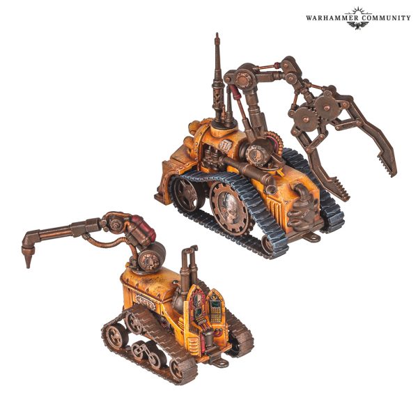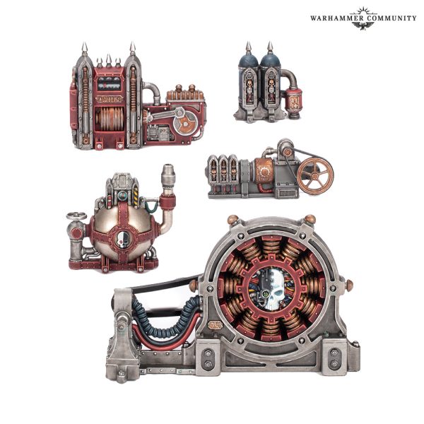 También puedes espolvorear tu campo de batalla con algunas piezas más pequeñas que le den vida, incluyendo un par de Reactores Haemotrope, Baterías Macroplasma, un conjunto de Servotransportadores Galvánicos (¡una grúa y un tractor Warhammer!), además de un conjunto de adorables Mechasite Minoris, que son pequeños trozos de automatización Mechanicus que hacen… cosas, estamos seguros.