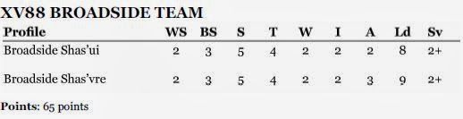 La formación incluye 1 Riptide y 2 equipos XV88, hasta 6 Apocalipsis.