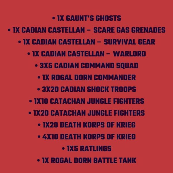 Y para finalizar por hoy, Astra Militarum de Cadia, Catachan, Fantasmas y Krieg que no se muy bien como funciona.