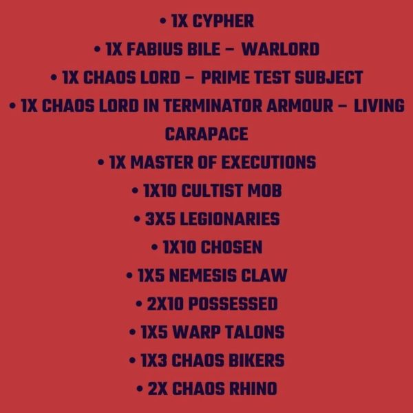 Una lista del Caos extraña y curiosa con Cypher y Fabius con una mezcla pupurri de tropas.