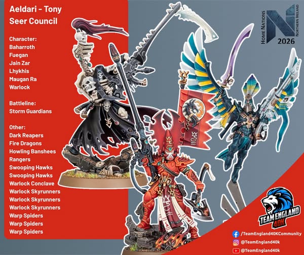 Empecemos con una de Aeldari con todos los Exarcas para sacar el mejor partido a sus tropas de especialista con multitud de ellas que se adaptan muy bien a todo enemigo.