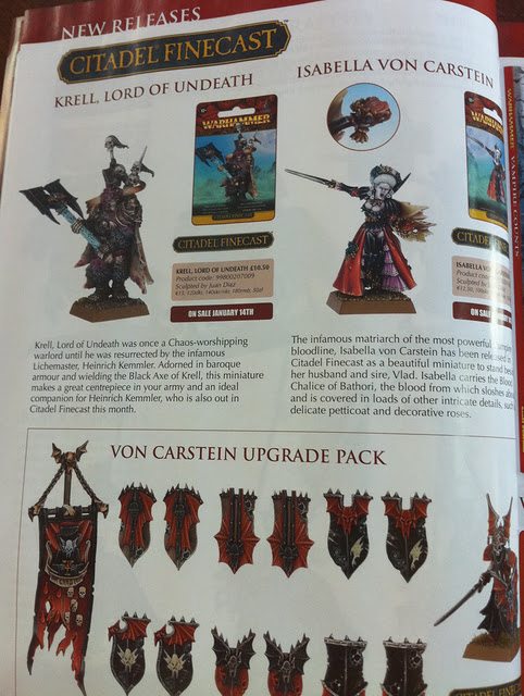 De momento aqui os dejamos las imagenes que circulan por muchos blogs y foros sacadas de la WD inglesa. Disfrutarlas y pensar en que quereis comprar para vuestro ejercito de condes vampiro. Id afilando vuestros dientes…