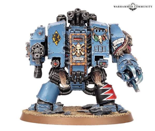 Y finalmente…. el enorme y legendario Dreadnought Bjorn el Manos Férreas que representa la garra y el salvajismo de los Lobos Espaciales.