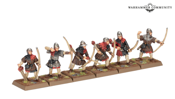 Tenemos los clásicos arqueros campesinos en pack de seis y su grupo de mando si queréis hacer alguna unidad barata de disparos en vuestro ejército.