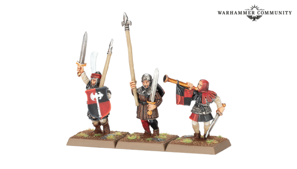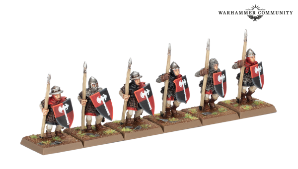 Luego tenéis de manera similar los hombres de armas con lanza y escudo. Esta unidad si que es difícil colocar ahora mismo pero quizás en tu ejército tengan sitio.