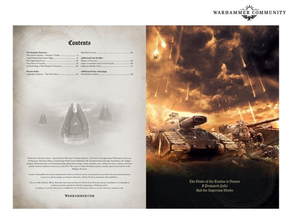 Las futuras revistas cubrirán diversos temas, siendo el más obvio las numerosas campañas icónicas libradas durante la Herejía de Horus, ofreciendo trasfondo, misiones, modos de juego e incluso unidades especiales o variantes inspiradas en las historias.