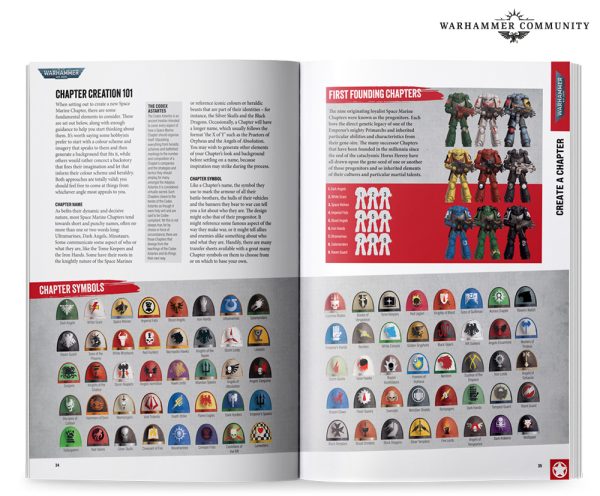 Una enorme sección de 20 páginas sobre Capítulos de Marines Espaciales personalizados, con ejemplos del equipo de Eavy Metal y otros miembros de Warhammer Studio, es una mina de oro para los aficionados a Warhammer que buscan agregar un toque único a sus ejércitos personales.