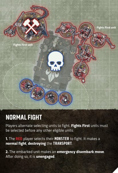 El sistema de combate funciona prácticamente igual que antes: los jugadores se turnan para elegir las unidades que pueden luchar. Sin embargo, el orden de combate ha cambiado. Lo más importante es que ahora el jugador cuyo turno es elige una unidad primero, incluso cuando las unidades de ambos bandos tienen la regla «Lucha Primero» . Esto significa que una de tus unidades que haya cargado atacará antes que las unidades enemigas que tengan dicha regla.