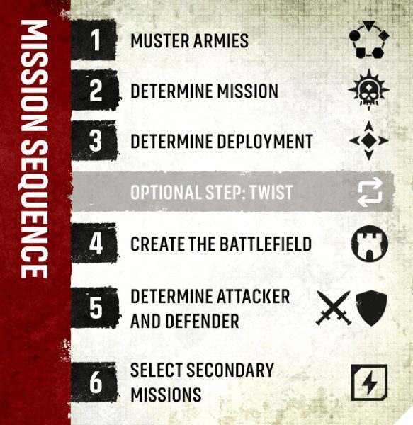 Todas las reglas iniciales de la misión y las cartas de despliegue vienen en el nuevo mazo de misiones Chapter Approved, que se incluirá dentro de la caja de lanzamiento de Armageddon junto con otro mazo misterioso del que hablaremos más adelante.