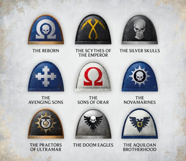 Cada uno es una fuerza formidable. Con sus mundos natales perdidos tras la locura de la Gran Grieta, Ultramar les ofrece una base de operaciones hasta que puedan recuperar el suyo. Estos Capítulos son: los Renacidos, las Guadañas del Emperador, los Cráneos Plateados, los Hijos Vengadores, los Hijos de Orar, los Novamarines, los Pretores de Ultramar, las Águilas de la Perdición y la Hermandad Aquiloana.