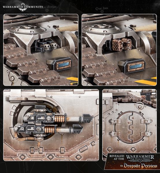 Cuenta con un cañón acelerador montado en la torreta, un arma tan potente que detendría a los Titanes. Y eso sin contar el cañón demoledor montado en su casco, los cañones láser cuádruples (que pueden intercambiarse por destructores láser o baterías de bólteres pesados Gravis) en sus barquillas, y las armas pesadas montadas en el casco y los montajes de pivote opcionales.
