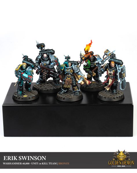En tercerca posición tenemos a esta unidad de la Deathwatch donde sorprende que la peana no ha sido para nada trabajada y eso quizás no la hecho estar quizás como ganadora pero que tiene un pintado extraordinario en cada una de ellas.