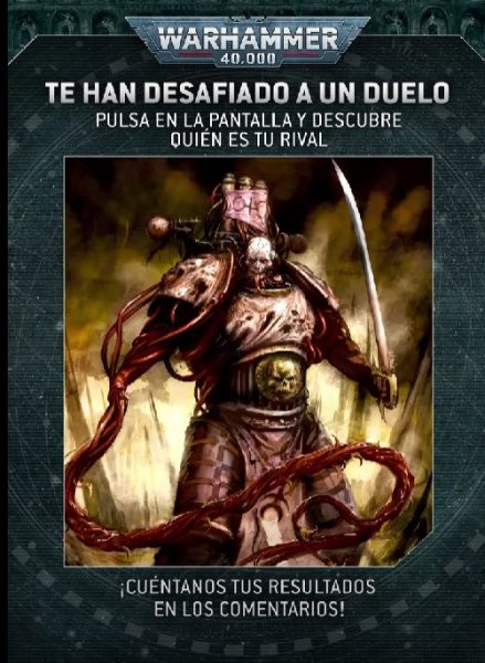 Esta vez se supone que tienes un desafio delante en el universo de Warhammer 40000 y te pueden tocar diferentes razas y personajes y ver que te sale al pulsar.
