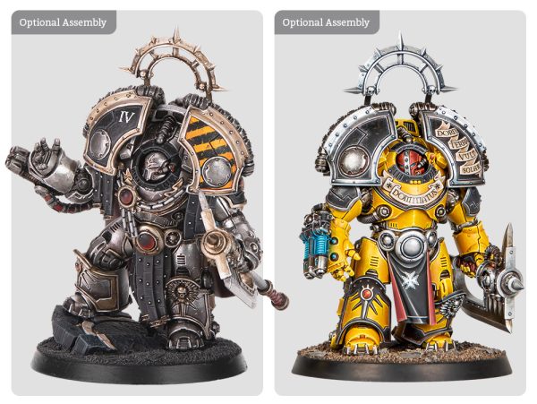 Cada uno cuenta con rótulas en las rodillas con pestañas para facilitar su colocación, que se pueden recortar para mayor personalización. La caja contiene una hoja de calcomanías de infantería de las Legiones Astartes con 618 calcomanías.