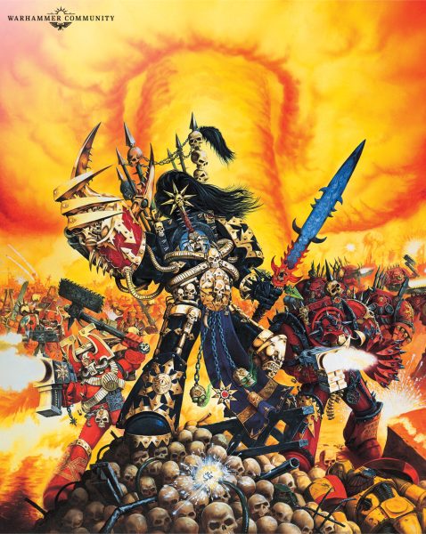 Hoy terminamos con esas ilustraciones que Games Workshop eligio como ilustraciones históricas dentro de la larga historia de Warhammer 40000 ambientadas en los Marines Espaciales del Caos