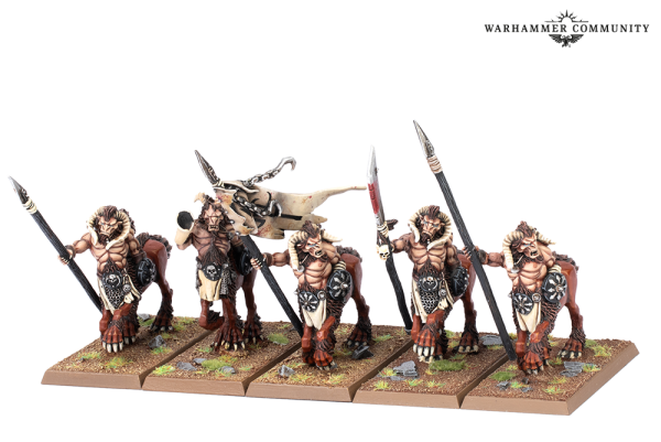 Así sobretodo en metal tenemos todos los modelos que salieron en su época ya hace muchos años de los Cestigors, las bestia medio caballos que solamente estuvieron siempre disponibles en metal. Por tanto si quieres este tipo de miniaturas por el momento son la única forma de tenerlos en tu ejército.