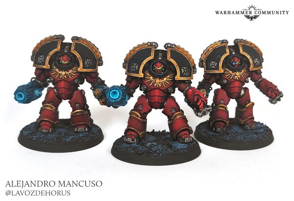 Damos la tercera y última tanda de miniaturas presentadas por Games Workshop de las nuevas armaduras Saturnine pintadas por sus trabajadores para daros ideas y mostraros diferentes técnicas de pintura e ideas para pintar estass originales miniaturas de Herejia de Horus