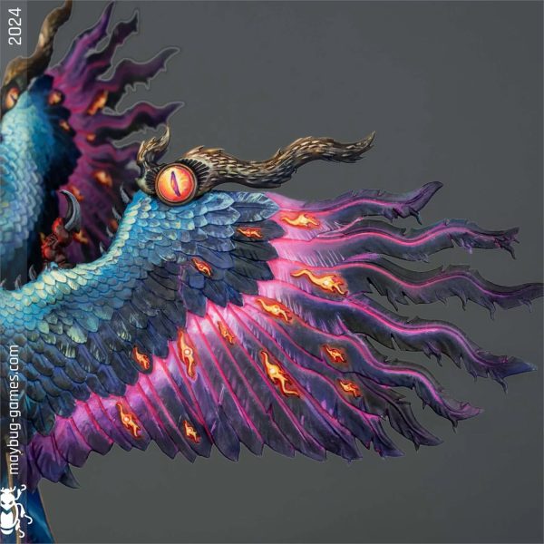 Vistosos colores sobre toda la miniatura y las alas son lo mejor de la miniatura junto a esos rayos a los pies que la hacen resaltar por los colores elegidos.