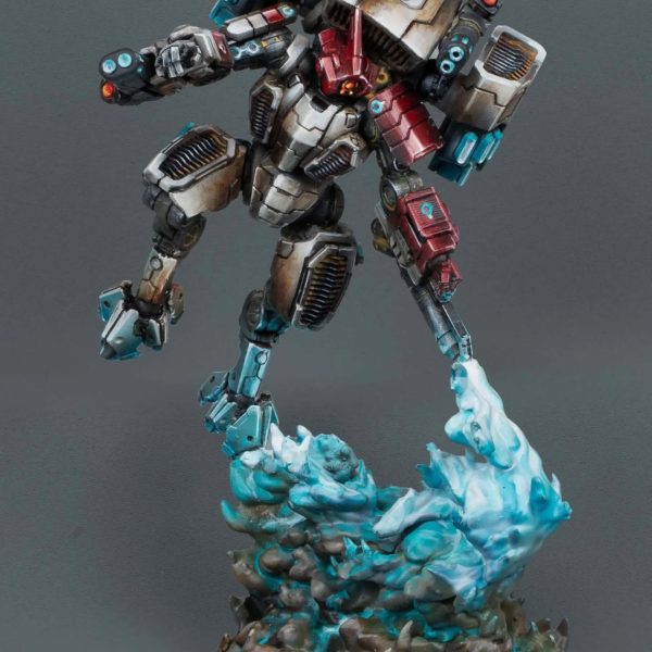 En esta obra tenemos varios puntos fuertes. Por supuesto la pose y ese rayo o lanzallamas funcionando sobre la miniatura. Y luego los efectos de sombras en la armadura es también genial.