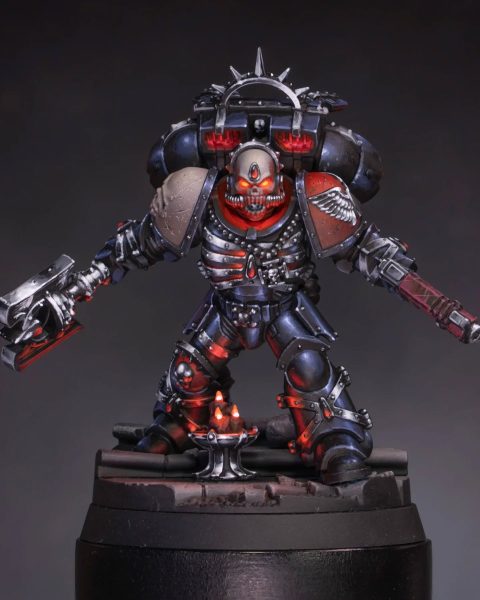 No es el estilo de pintura que amo ni el que haría en mis miniaturas pero los efectos de la luz sobre la armadura es una creatividad magnificament elograda y luego el pintado de todos los detalles en la armadura es de alzar sobre la media del público básico.