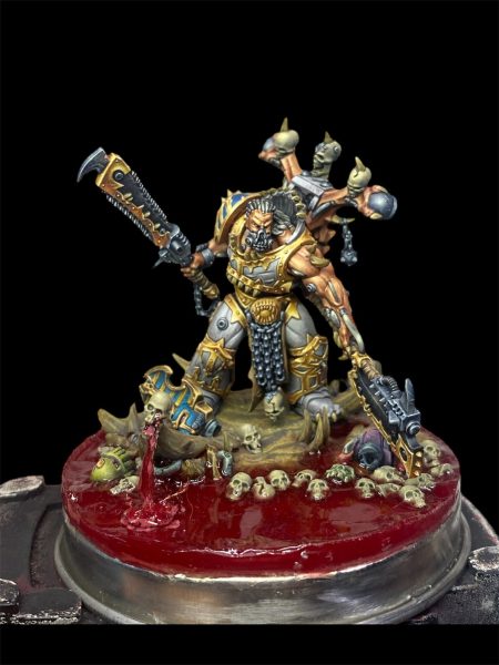 A Khorne le gusta la sangre….pues en esta peana hay mucha. Una idea quizás excesiva con sangre pero quizás para alguna obra en especial. Y nota especial con el pintado en plateado y dorado que queda muy resultón.